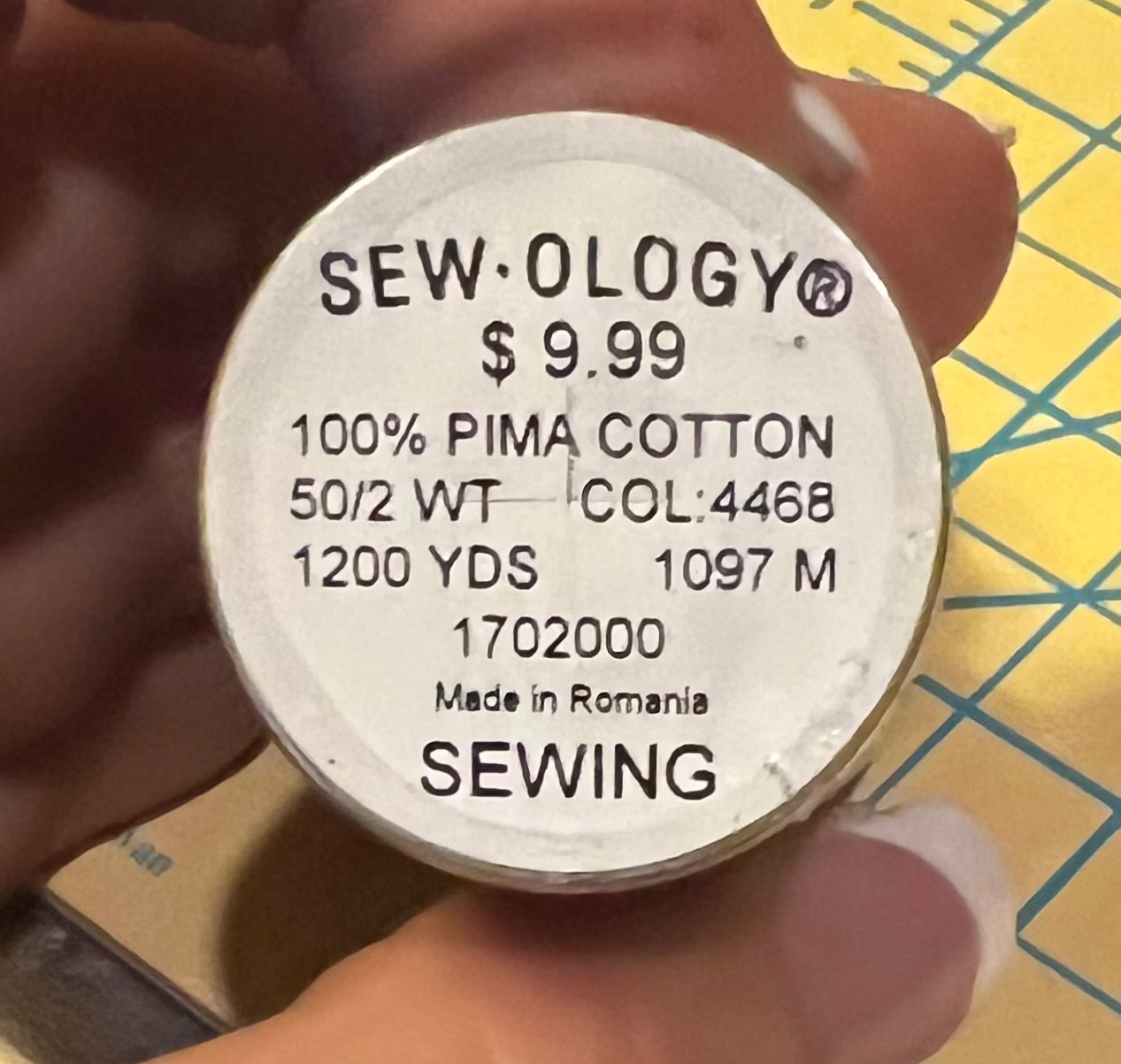 This purchase is for one spool of 1200 yards of 50 weight 100% Pima cotton thread made by Sewology.