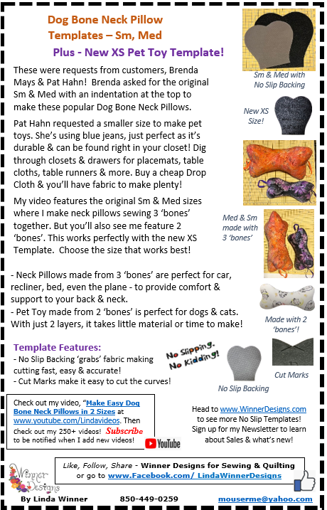 Be sure to check out my video, "Make Easy Dog Bone Neck Pillows in 2 Sizes". You won't see the new XS Size Template in the video but you'll be able to get all of the info you need from the video to make these.