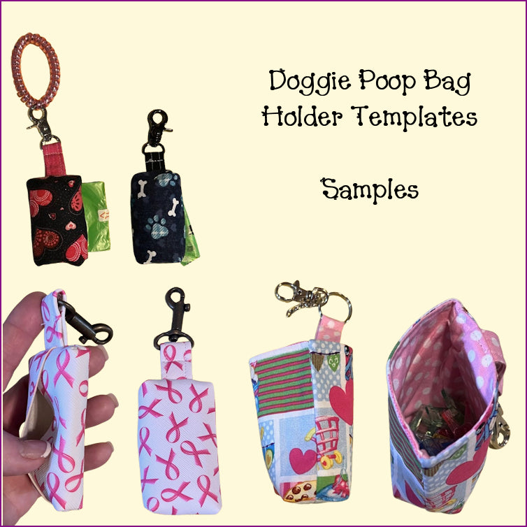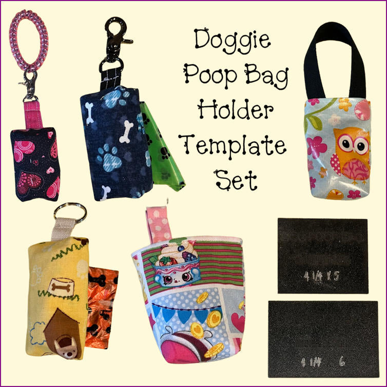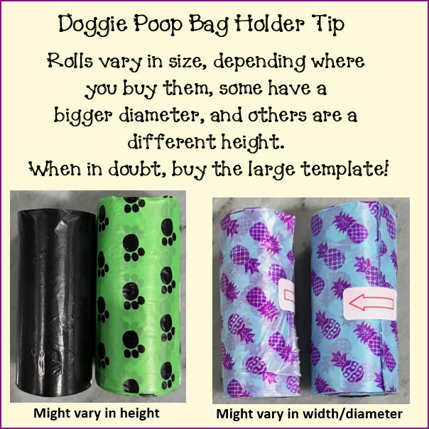 Both Doggie Poop Bag Holder Templates have a No Slip Backing that makes cutting accurate, easy and quick to cut and stitch. The larger of the templates creates the lining and gives a faux binding. The smaller template is the majority of what's seen so choose some cute doggie-themed fabrics or fabrics that the dog owner loves!