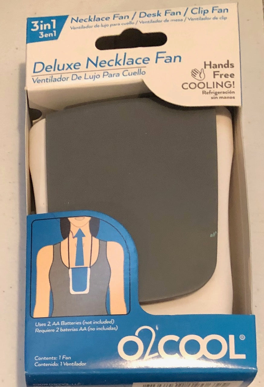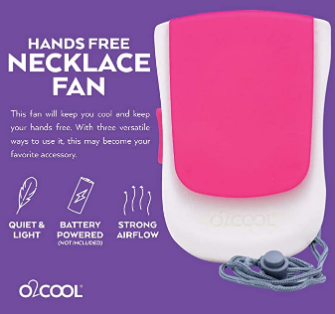 This cute little necklace fan doesn't look like much but it sure makes a difference! Wear it around your neck and tighten the cord so that it blows directly up, offering an instant cool. I have been wearing these for years & it has saved me & my sanity! I like it so much that I've been giving them as gifts to family & friends and I get requests for them all the time.