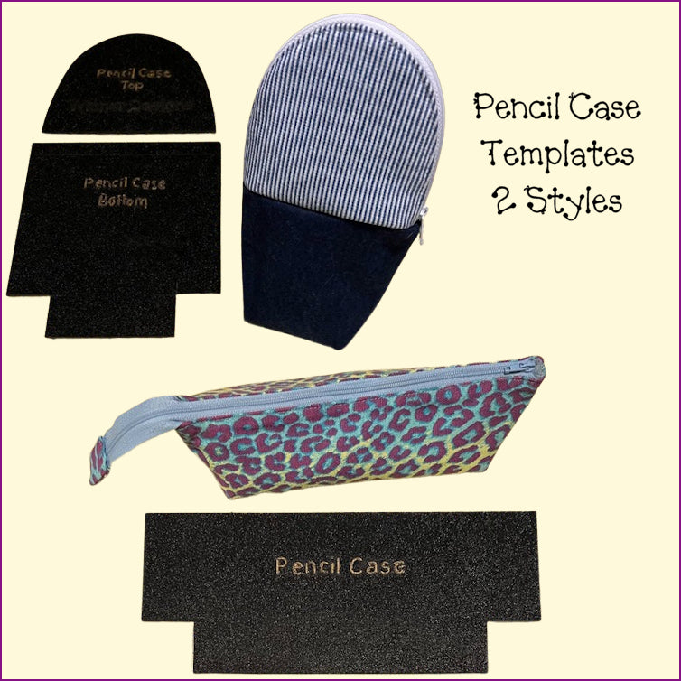 The 3rd is the Fold Down Pencil Case that stands tall with a curved zipper top. Use it unzipped standing up or fold the curved top down for easy access to your tools. You may have seen something like this online. My friend Darla not only suggested this one but also made the 2 samples shown here! This one also has Boxed Bottoms and Cut Marks to make the bottoms easy to cut and stitch. Plus, you can use the Bottom Template all by itself to make a cute box, basket or zippered case~!