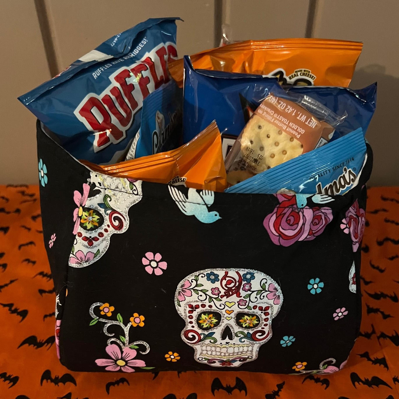 They make great baskets for your favorite tools & to help you get organized. Add napkins, utensils, rolls & other foods to set a pretty table. Or turn them into cute bags to carry. Use pretty or cool fabrics for everyday use or make them special for the holidays! Turn them into fun trick or treat pumpkin bags or add bunny ears & a face for a funny bunny bag. Or for Christmas, add pointy ears and a funny grin to make an adorable elf bag or basket.