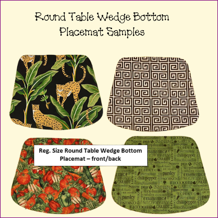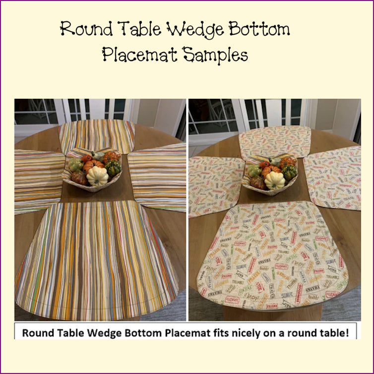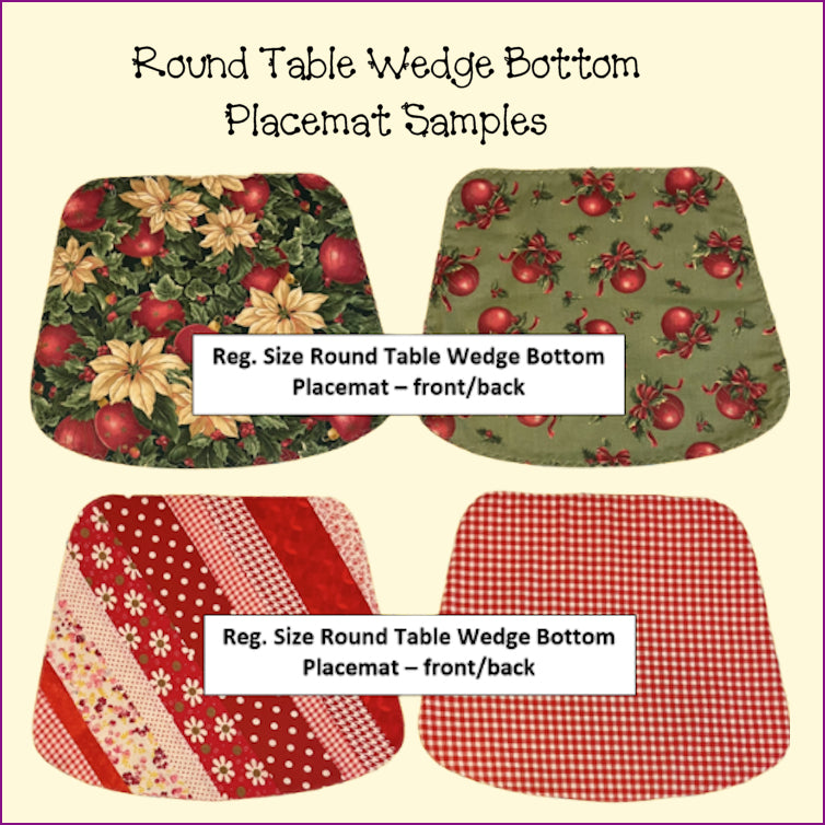The Round Table Placemat was designed for round tables where rectangle placemats overlap. Choose the Original or Large. Check out my video below "Perfect Placemats for your Round Table!" where you’ll see how to make these as well as other projects created by my friend, Jessica.