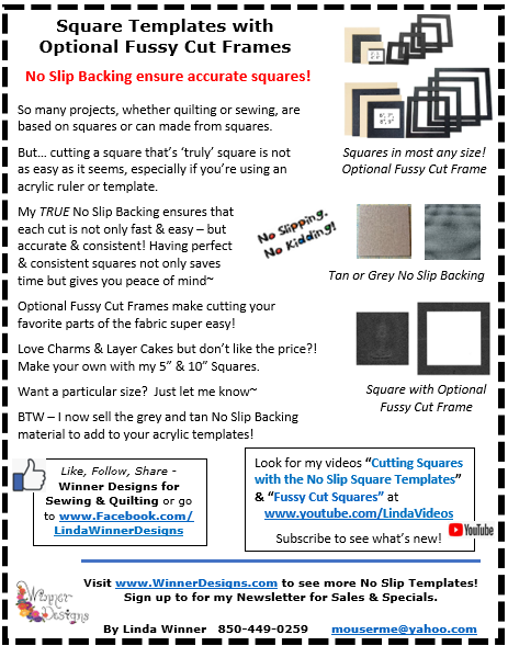 Whether you're a quilter, crafter or sewer, squares are so handy! These No Slip Templates make cutting so fast, easy and consistent.