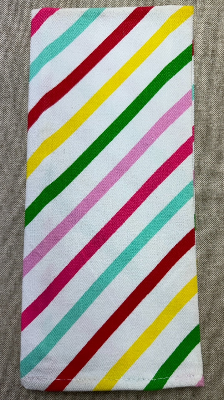 All of these will work well with my Towel Topper Templates. Some are thinner tea towels which are super easy to sew, some are microfiber (great for dusting); and some are a bit thicker but not too thick. If you're not sure about a particular one you see, zoom in for a closer look or call me for more details. (850-449-0259)